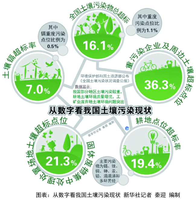 环境保护部和国土资源部公布《全国土壤污染状况调查公报》,从公报披露的一系列数字来看,我国部分地区土壤污染较重,耕地土壤环境质量堪忧,工矿业废弃地土壤环境问题突出。